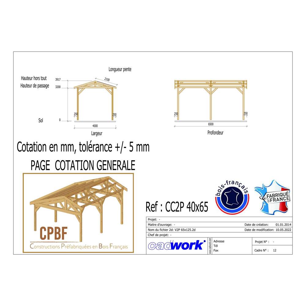 Abri Deux Pentes, Bois DOUGLAS Français 400cmx650cm, CC2P40X65