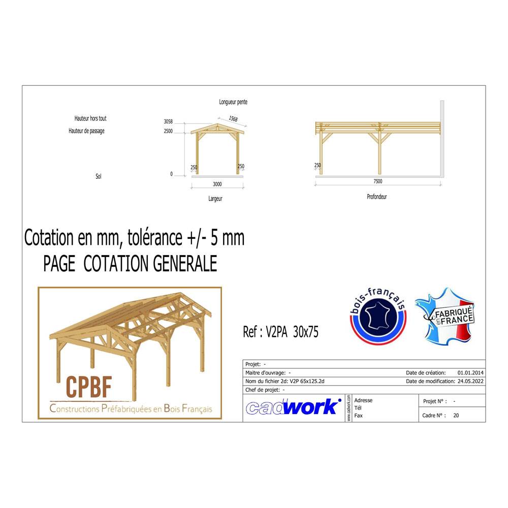 1. Abri Deux Pentes Adossé, Bois DOUGLAS Français, Carport, Auvent, Abri voiture, CPBF