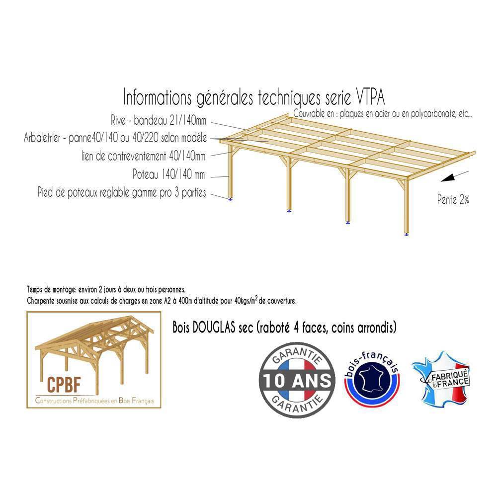 Abri carport Toit Plat Adossé, Bois DOUGLAS Français
