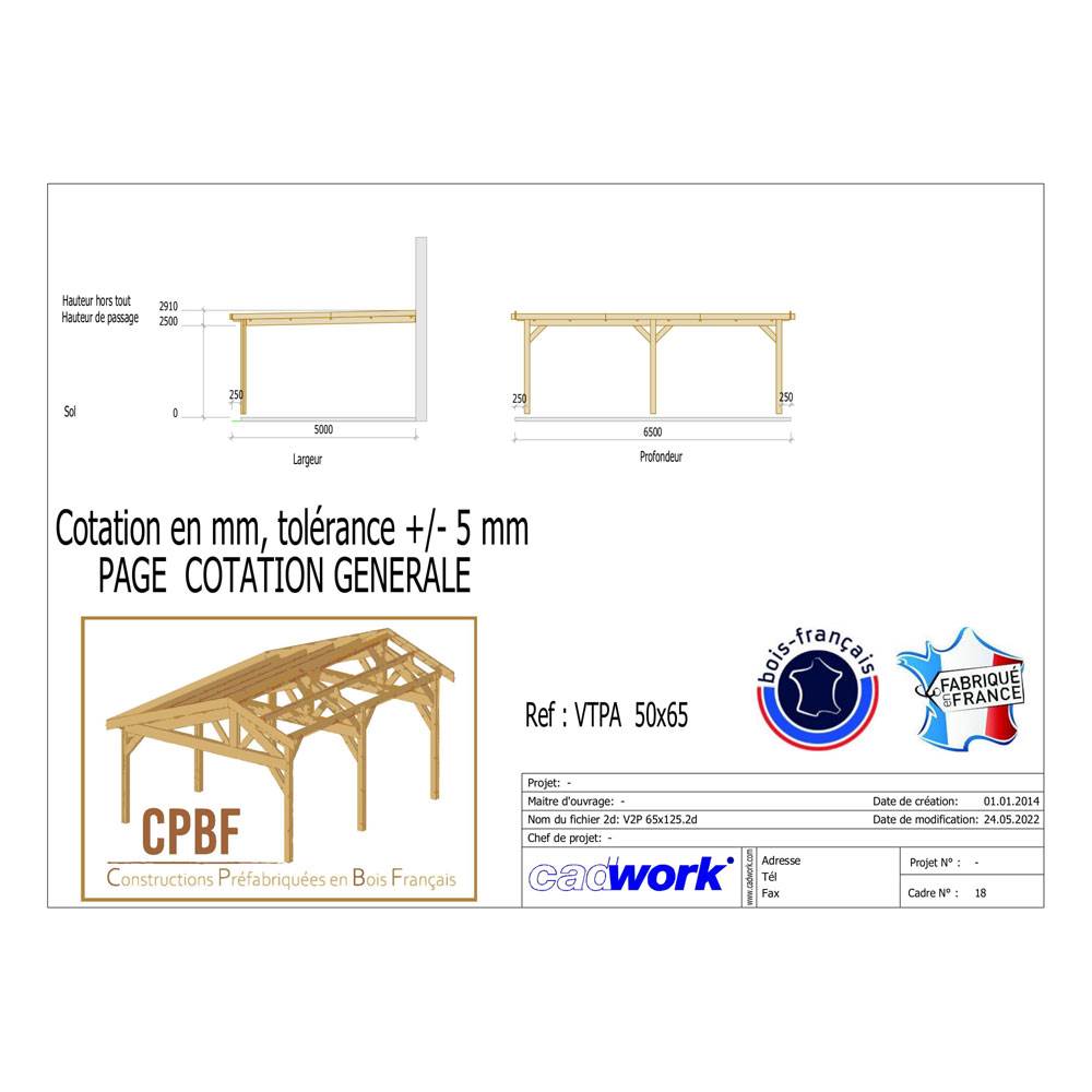 1. Abri Toit Plat Adossé, Bois DOUGLAS Français, Carport, Auvent, Abri voiture, 500cmx650cm, CPBF
