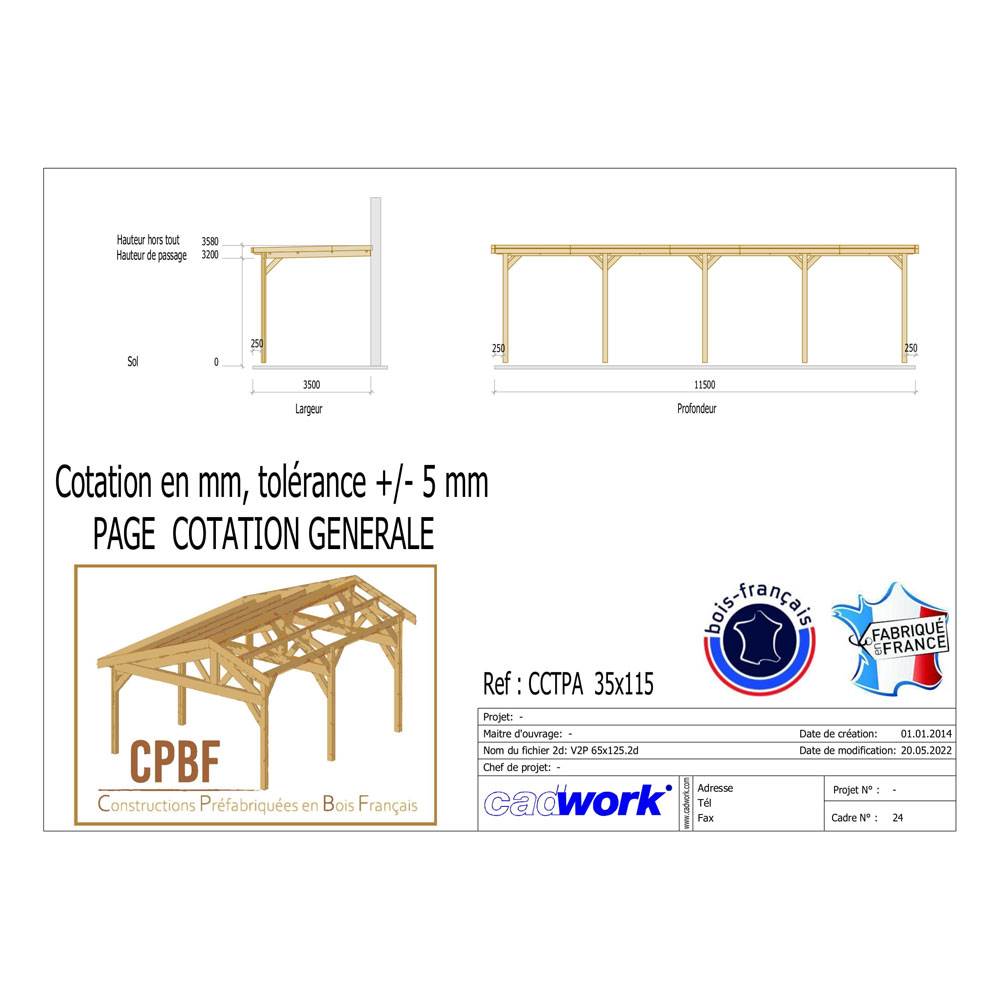 1. Abri Toit Plat Adossé, Bois DOUGLAS Français, Carport, Auvent, Abri Camping-car, 350cmx1150cm, CPBF