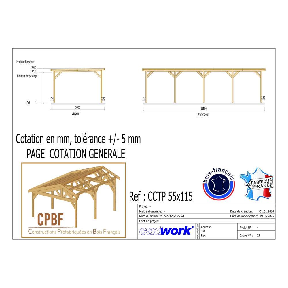 Abri Toit Plat, Bois DOUGLAS Français 550cmx1150cm, CCTP55X115