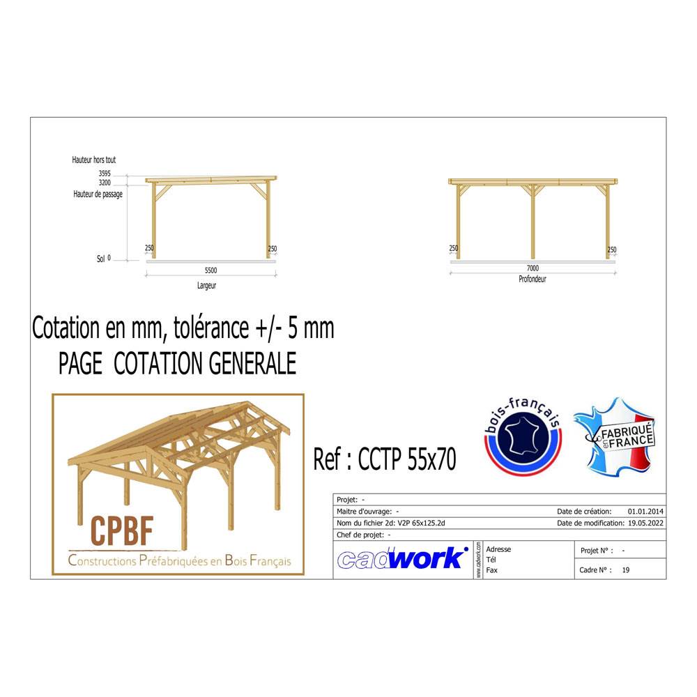 Abri Toit Plat, Bois DOUGLAS Français 550cmx700cm, CCTP55X70