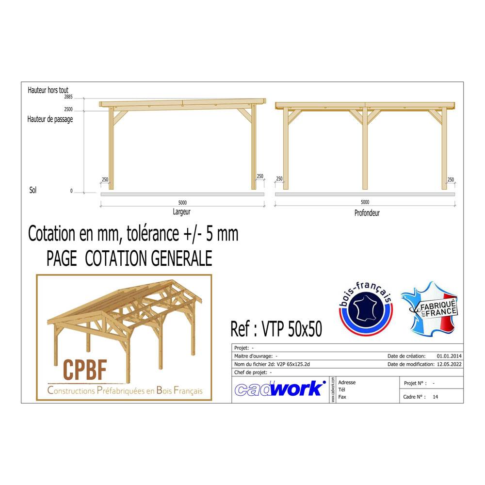 1. Abri Toit Plat, Bois DOUGLAS Français, Carport, Auvent, Abri voiture, 500cmx500cm, CPBF