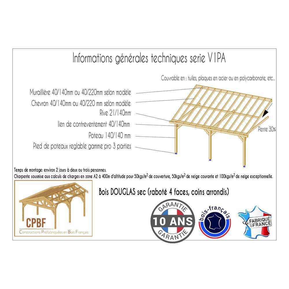 1. Abri Une Pente Adossé, Bois DOUGLAS Français, Carport, Auvent, Abri voiture, 300cmx400cm, CPBF