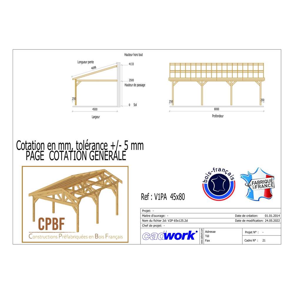 1. Abri Une Pente Adossé, Bois DOUGLAS Français, Carport, Auvent, Abri voiture, 450cmx800cm, CPBF