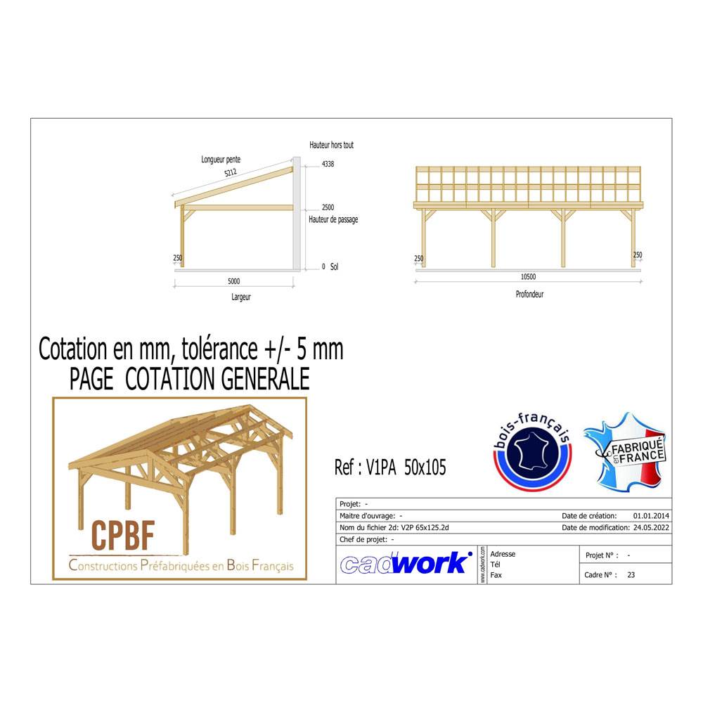1. Abri Une Pente Adossé, Bois DOUGLAS Français, Carport, Auvent, Abri voiture, 500cmx1050cm, CPBF