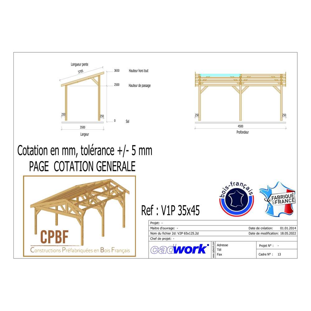 Abri Une Pente, Bois DOUGLAS Français 350cmx450cm, V1P35X45