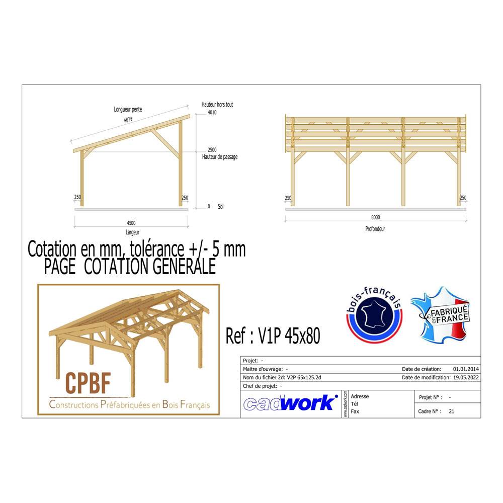 Abri Une Pente, Bois DOUGLAS Français 450cmx800cm, V1P45X80