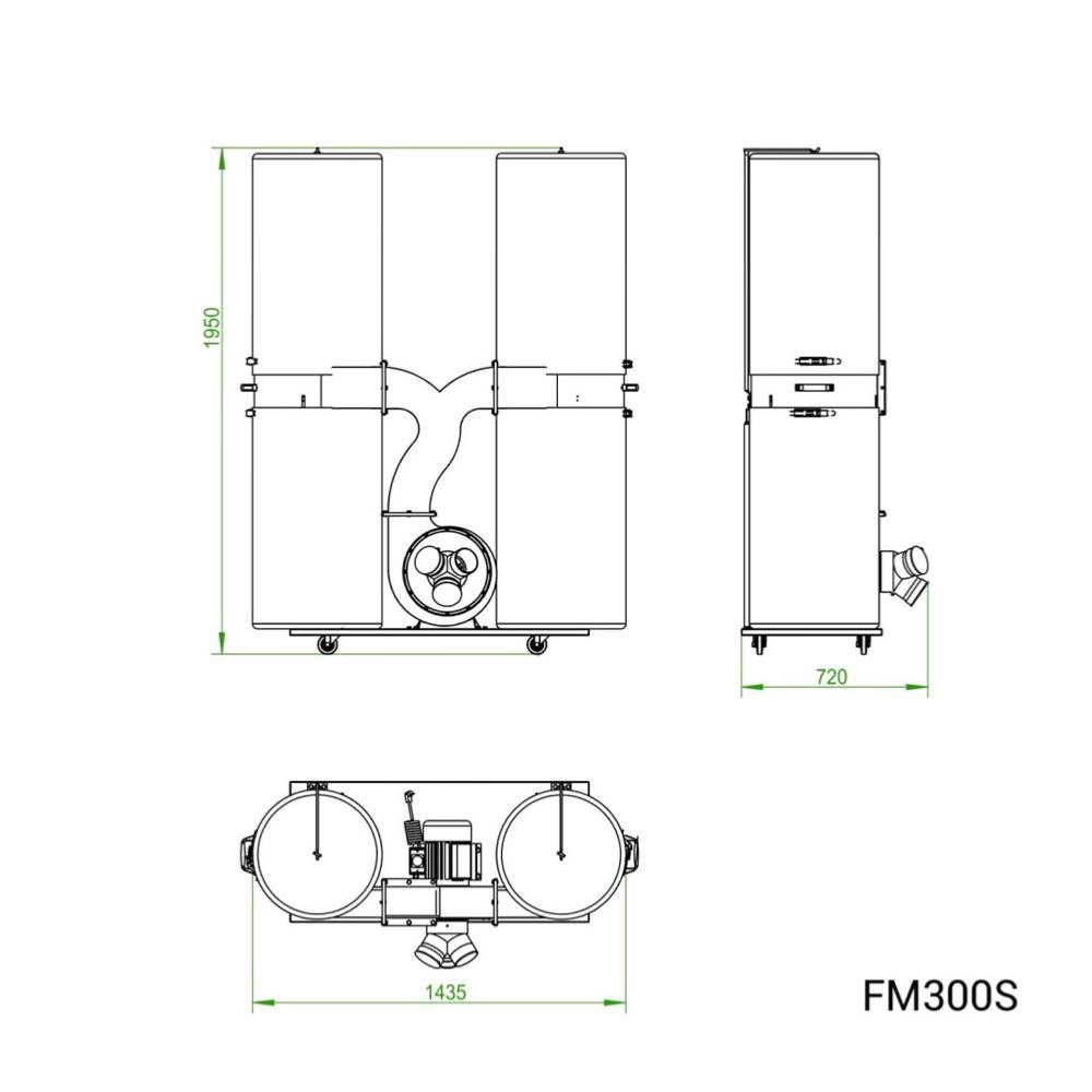 1. Aspirateur mobile monophasé 320 litres 2 sacs 3000w FM300S-MONO, HOLZFM300S-MONO, JEAN L'EBENISTE