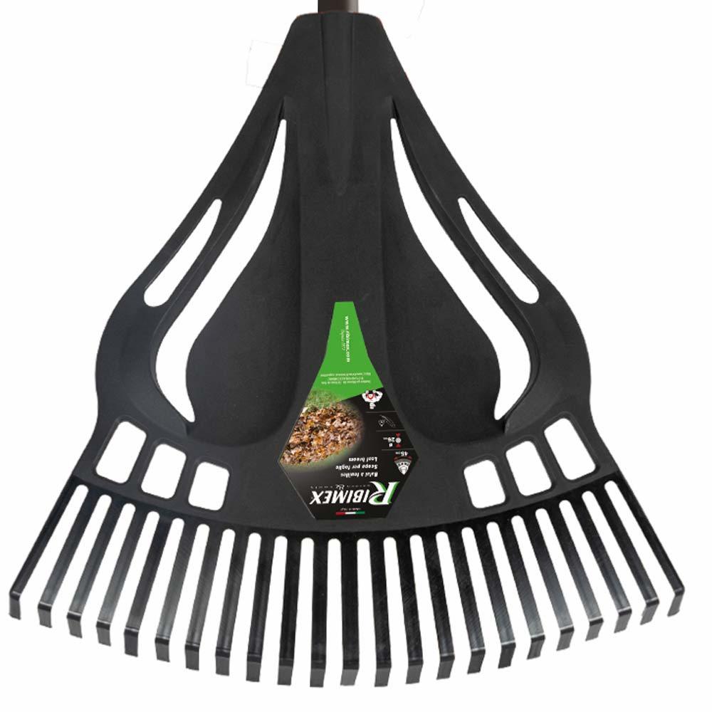 - Balai à feuilles et gazon en plastique noir avec 23 dents flexibles pour un ramassage efficace