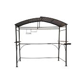 Carport barbecue en acier finition époxy gris anthracite avec toit en acier galvanisé dimensions l 2,60 m x P 1,50 m x H 2,45 m livré avec 4 pieds réglables à rattrapage de niveau, 2 tablettes sur le côté 140x25x2 cm, une étagère pour condiments, une étagère porte essuie-tout, une patère porte tablier de cuisine, 5 crochets pour ustensiles de cuisson, support de sac poubelle à fixer sur le carport barbecue.