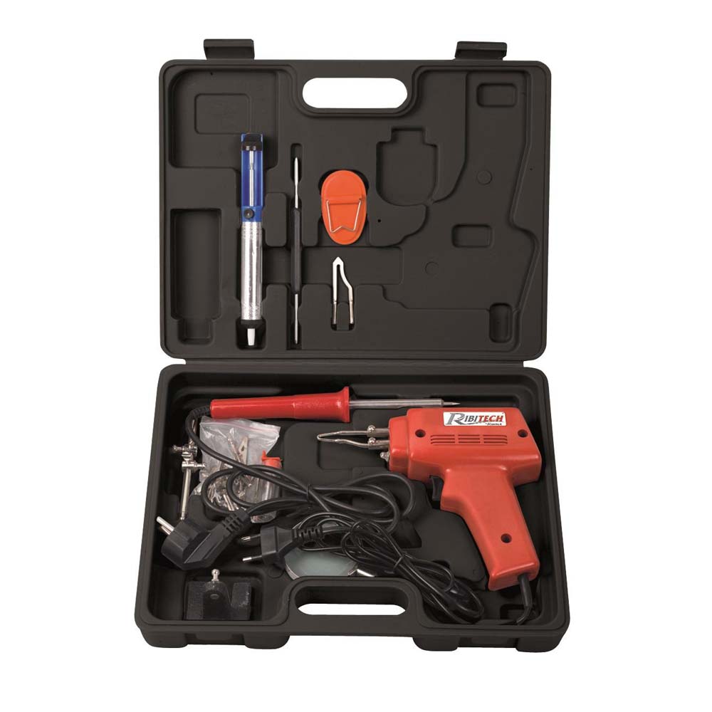 1. Kit comprenant 1 pistolet à souder 100 W à chaleur instantanée et 1 fer à souder 30 W avec panne pointue (pour soudure de précision).