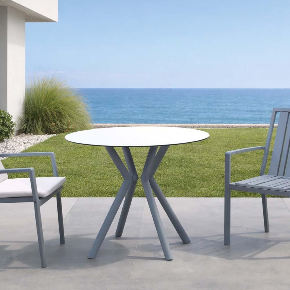 - Table de jardin BEIRUT avec plateau HPL blanc, dimensions 80 x 80 x 75 cm, stable et facile d’entretien