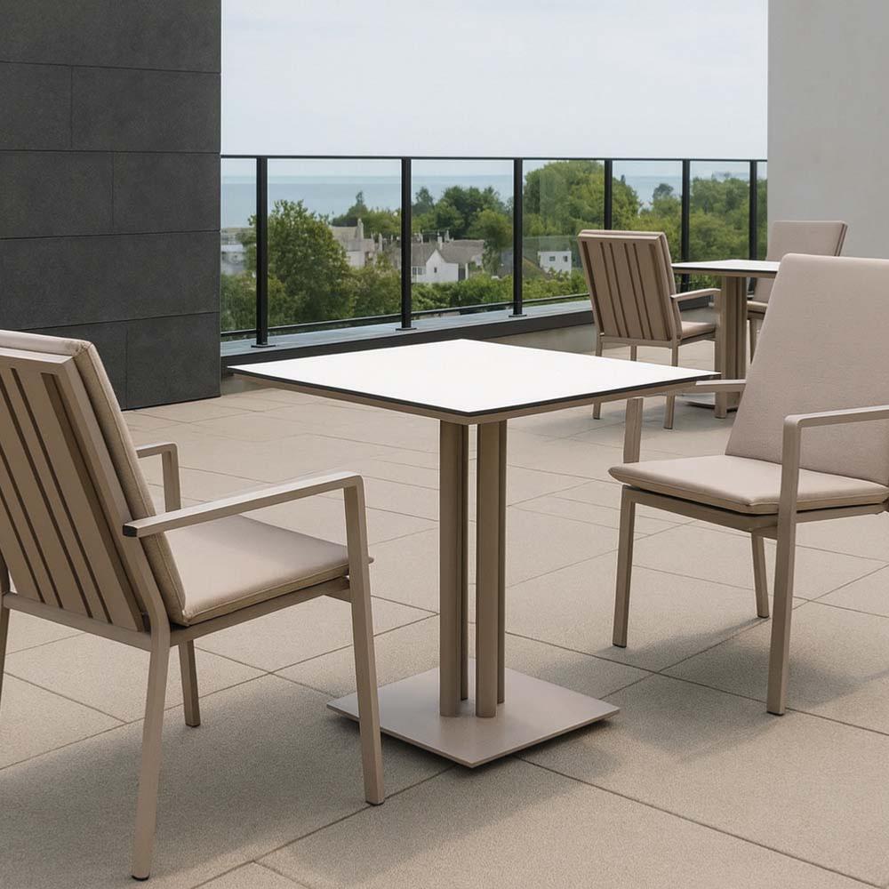 - Structure 100 pourcent aluminium finition blanc NUDE avec plateau HPL haute résistance, mobilier extérieur durable et facile d’entretien
