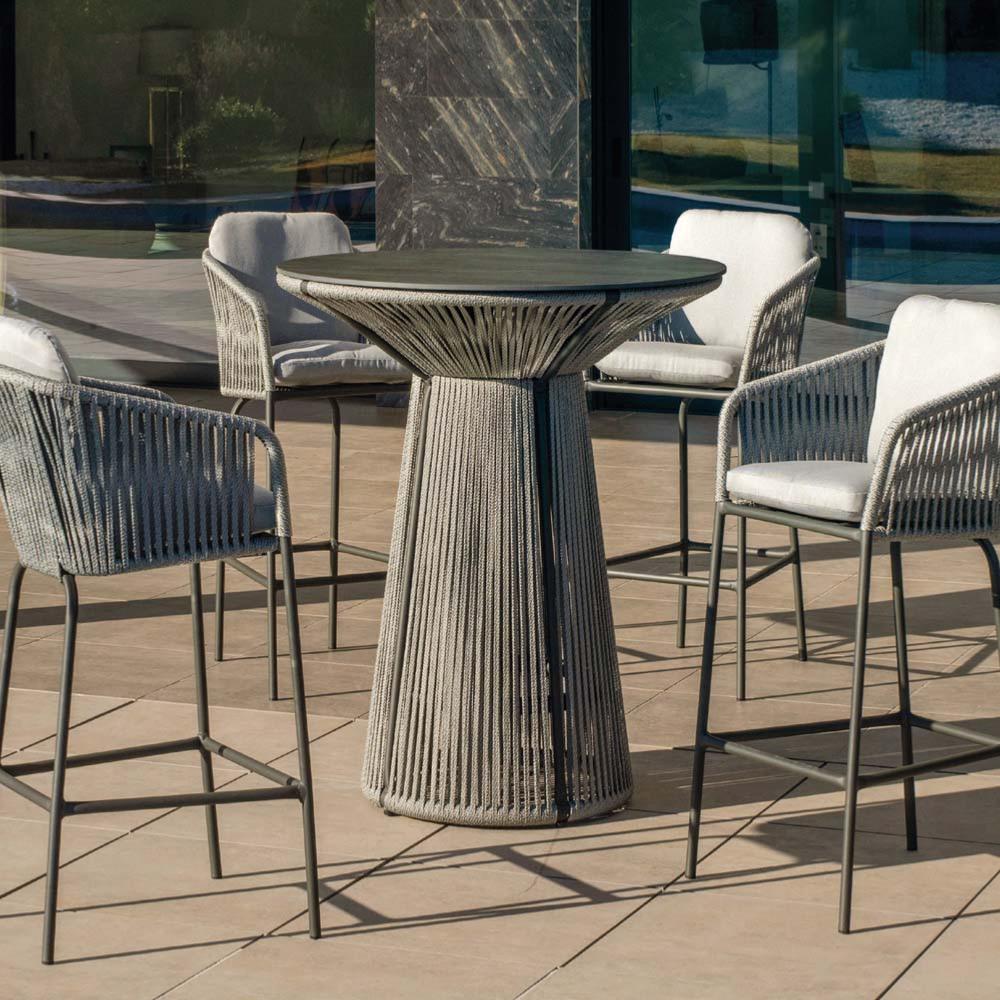 - Ensemble bistrot bar 4 places composé de 1 table bar ronde 90 cm et 4 fauteuils tabourets style tressé, idéal terrasse, jardin ou espace extérieur professionnel