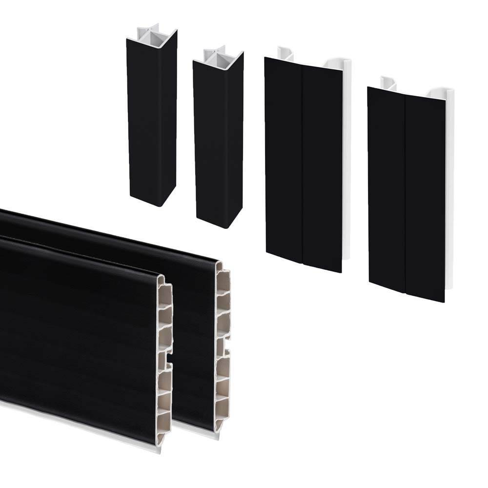 Lot 2 plinthes cuisine Plasline raccords haut. 150mm 2 profils long. 2.35m plastique Noir