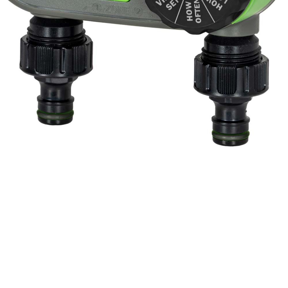- Programmateur arrosage digital 2 voies avec jusqu’à 2 programmations distinctes personnalisables sur 1 à 7 jours
