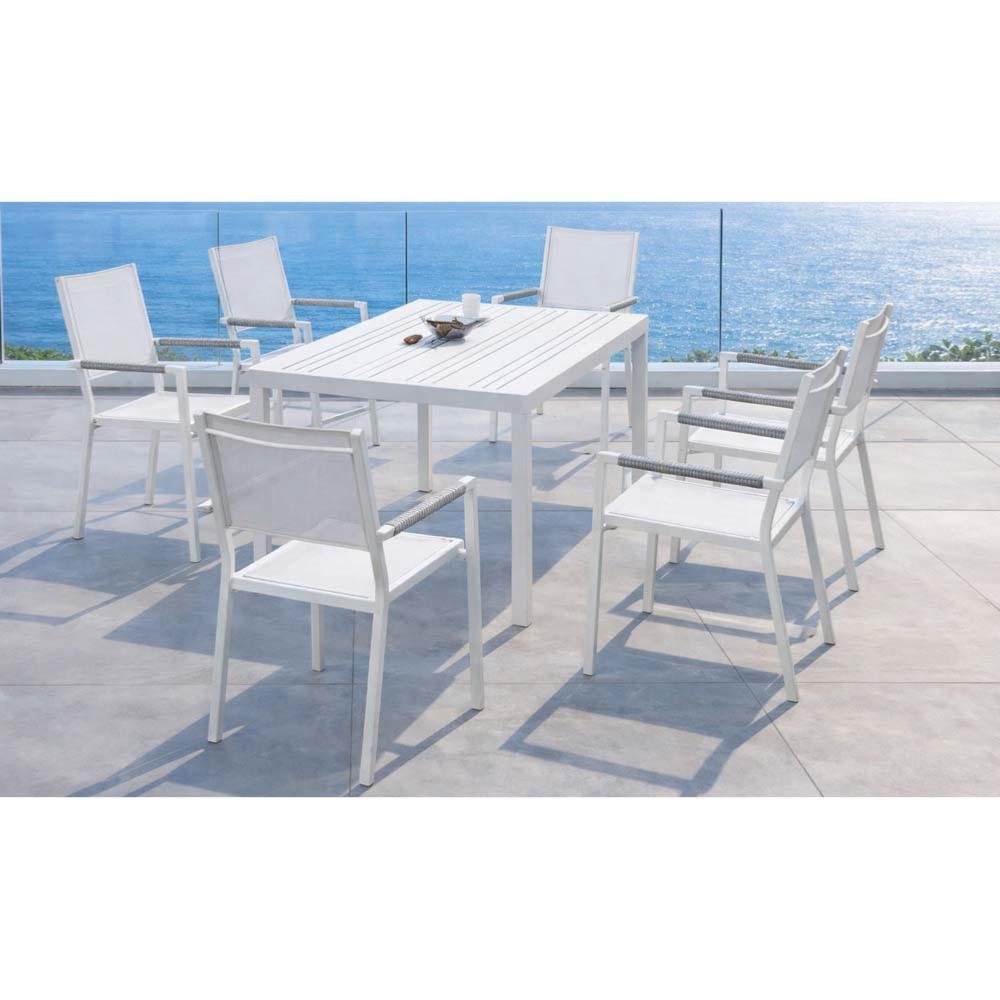- Salon a Manger 6 places design moderne ideal pour les repas en exterieur avec table rectangulaire 200 cm et 6 fauteuils confortables assortis