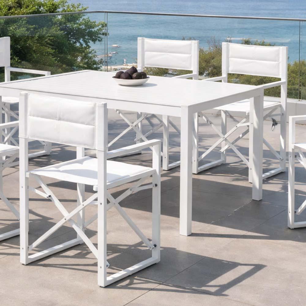 - Salon à Manger 6 places complet comprenant 1 table rectangulaire 200 cm et 6 fauteuils pliables Director, idéal pour repas conviviaux en extérieur