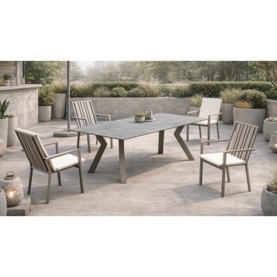 - Table VENETO plateau HPL imitation pierre, dimensions 220 x 110 x 78 cm, finition NUDE ARGENTA, design moderne et grande résistance aux usages extérieurs