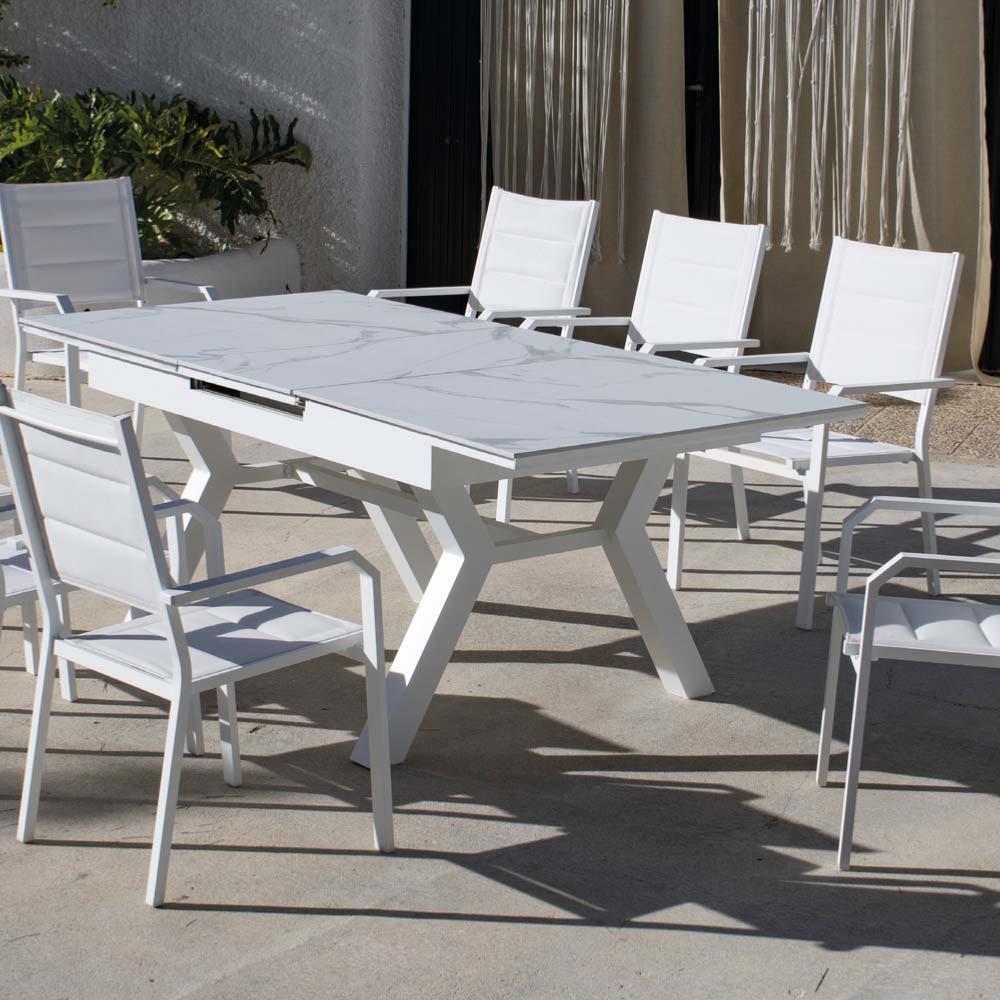 - Marque HEVEA référence 33979, salon à manger table extensible 8 places fiable et durable pour usage extérieur