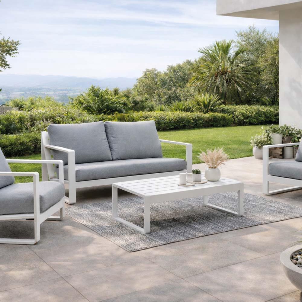 - Salon de jardin Sofa ALELI-7 LUX blanc et gris clair, design contemporain et durable pour extérieur comme véranda