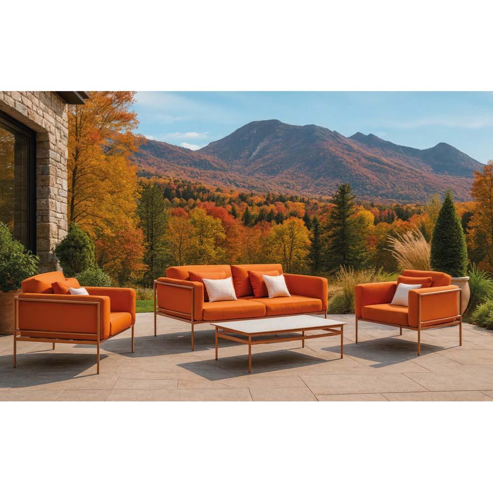 Salon jardin 4 à 5 places sofa 2 places 2 fauteuils table basse tropical terracota