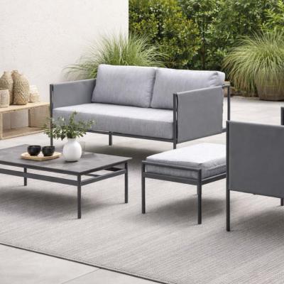 Salon jardin 4 à 6 places sofa 2 pl 2 fauteuils table basse pose pieds anthracite gris,33965,HEVEA