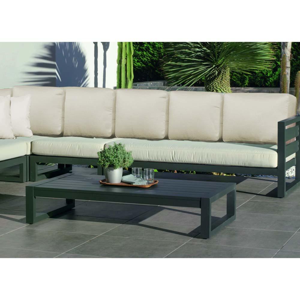 Salon jardin canapé d'angle 4 à 8 places table basse anthracite tissus beige