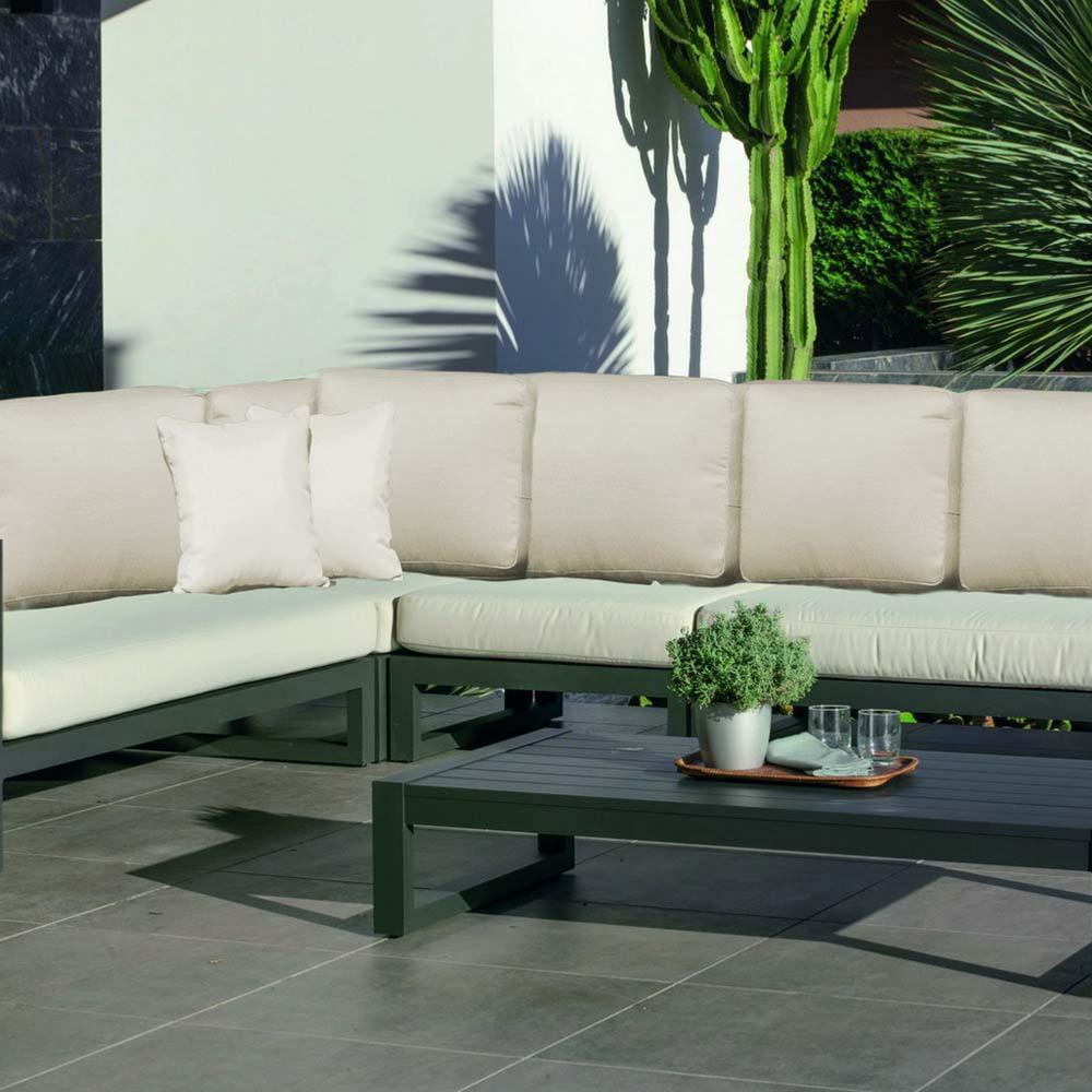 - Salon de jardin Sofa Corner COSMOS offrant une modularité optimale pour créer un canapé d’angle convivial et fonctionnel