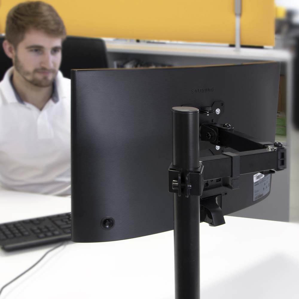 • Bras de support ecran pour bureau d'une longueur maximale de 430 mm. Comprend des guides de câbles pour laisser le câblage organisé et caché.