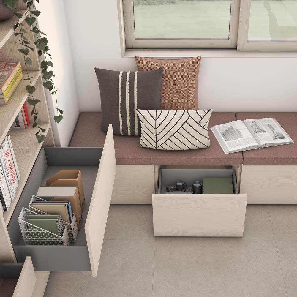• Coulisses à sortie totale synchronisés, avec fermeture amortie et charge jusqu'à 40 kg.